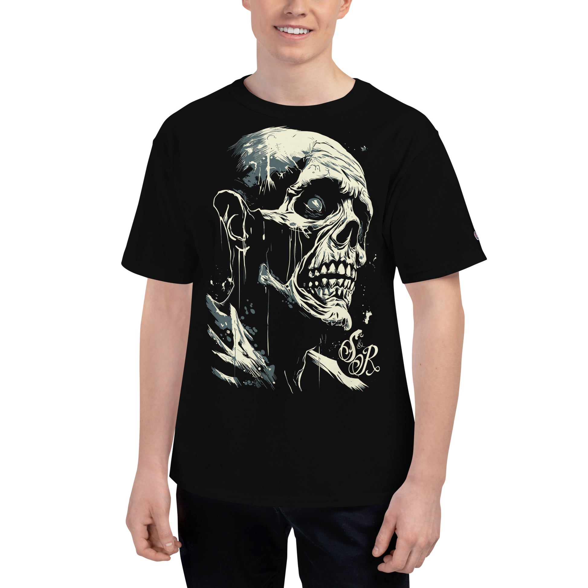 Enrich your wardrobe with this villainous design, emblazoned upon a Champion t-shirt, distinguished by the brand's emblem sinisterly stitched into the left sleeve. The 100% cotton fabric and deep armholes are sure to make it your favorite tee.